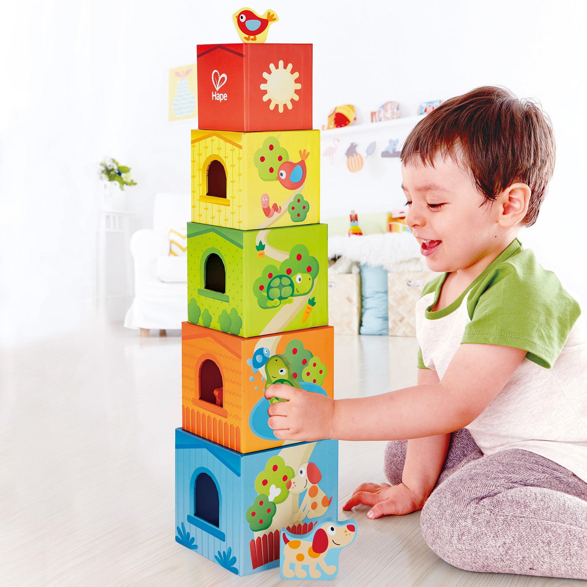 Permiteti-i copilului sa se joace si sa experimenteze in pace. Cutiile stivuibile sunt fabricate din carton, ceea ce le face foarte sigure pentru joaca.