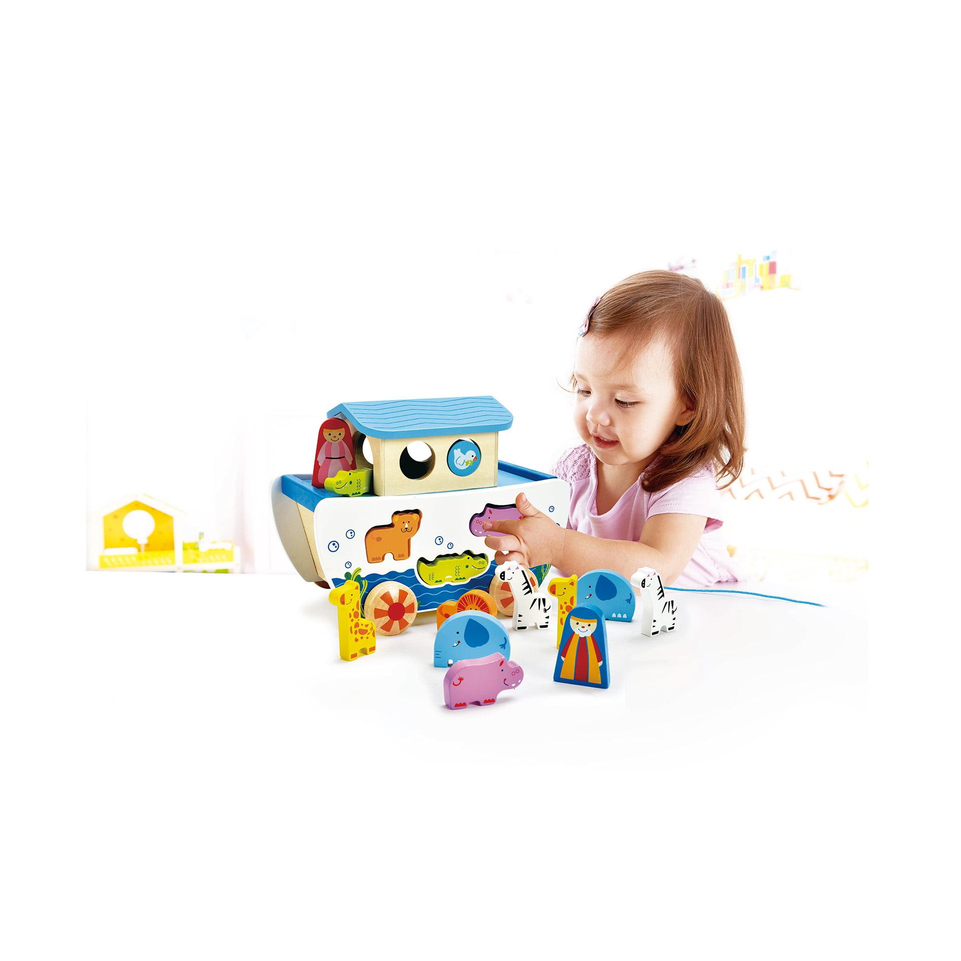 Aceasta Arca lui Noe din lemn frumos lucrata este o jucarie multifunctionala 3 in 1. Pe langa faptul ca este un set minunat de joaca, este si o jucarie de tragere si un sortator de forme.