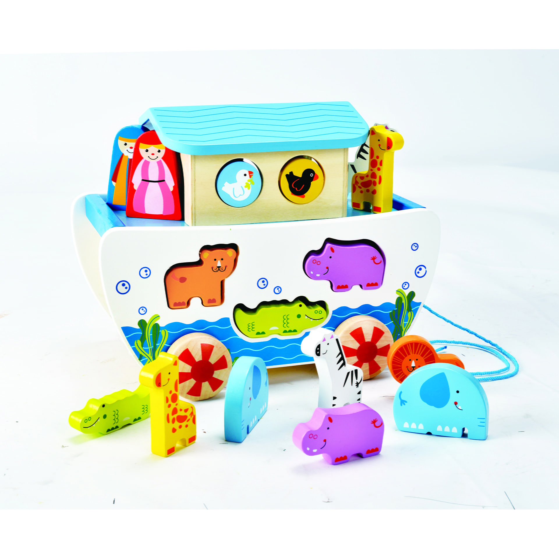 Jucarie din lemn – Arca lui Noe de tras si sortator de forme