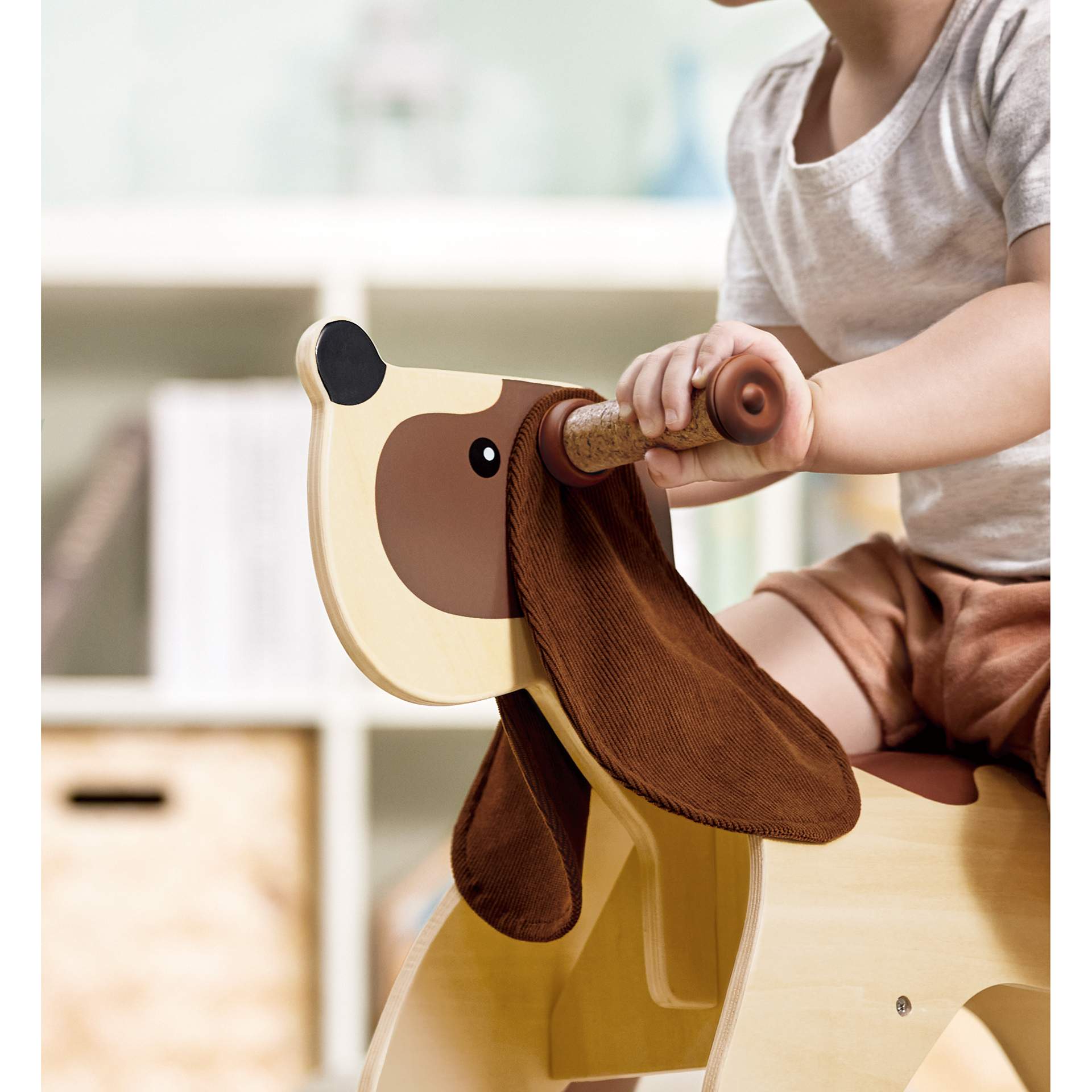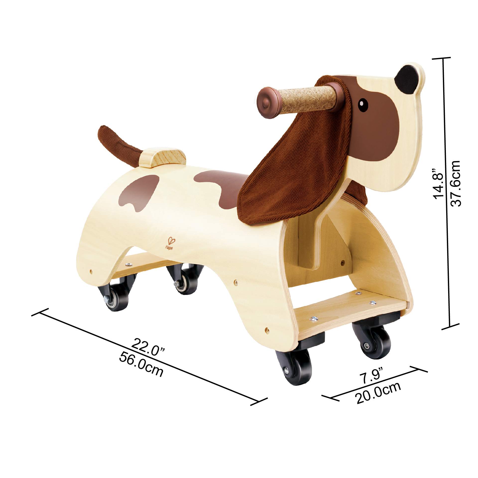 Lemnul durabil, pluta, catifeaua si rotile sunt rezistente si construite pentru a rezista. Copilul tau va alerga in jurul casei sau in curte, iar jucaria se poate descurca!