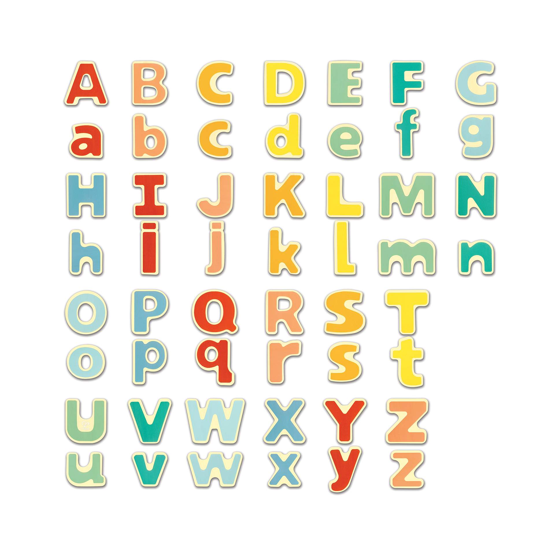 Jucarie din lemn copii – Magneti alfabet (52 piese) alfabetar. Literele magnetice sunt populare atat in mediul educational, cat si in cel casnic, dar literele noastre vin cu culori si materiale mai stralucitoare, care dureaza multi ani.
