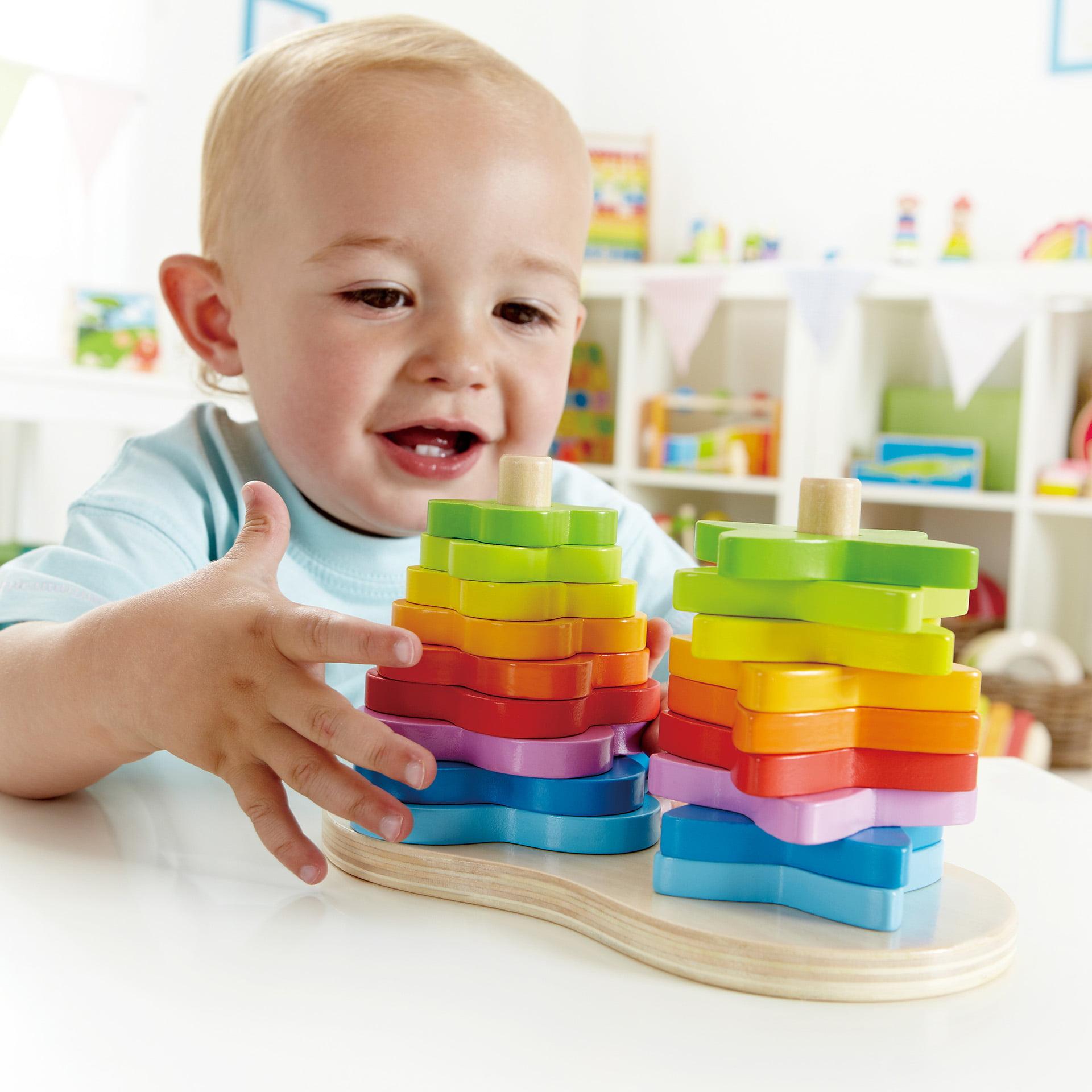 Doua forme si noua culori creeaza posibilitati infinite de stivuire si sortare, tinandu-va copilul ocupat ore in sir.