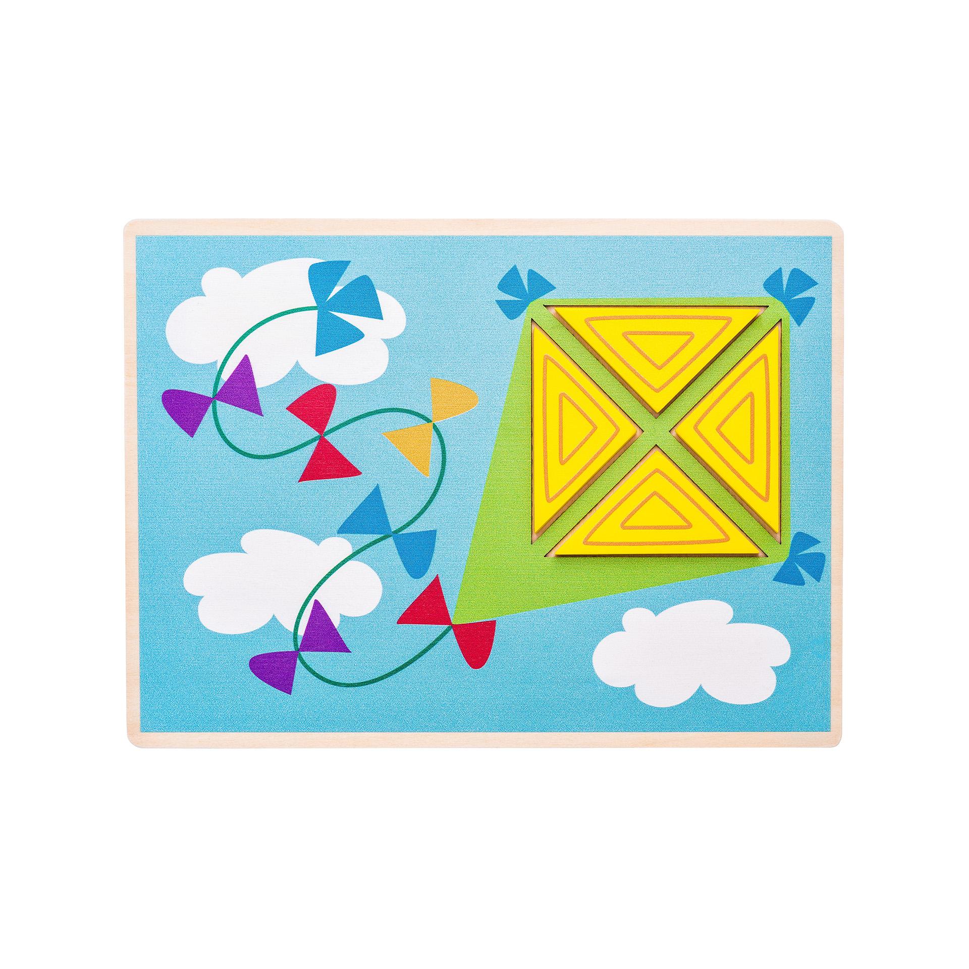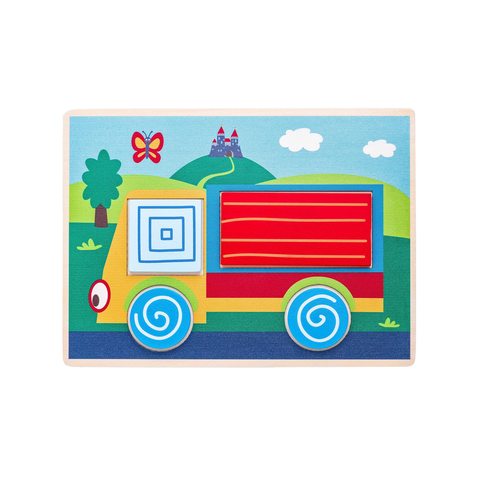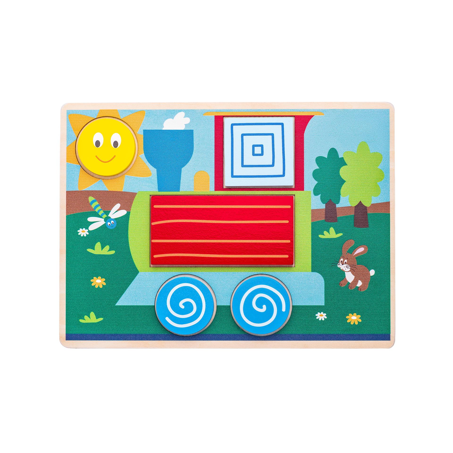 Cutia din lemn contine 10 placi de imagine. Fiecare placa are decupaje sub forma de forme geometrice. Copilul pune in imagine formele corespunzatoare si astfel dezvolta logica si combinatia subtila.