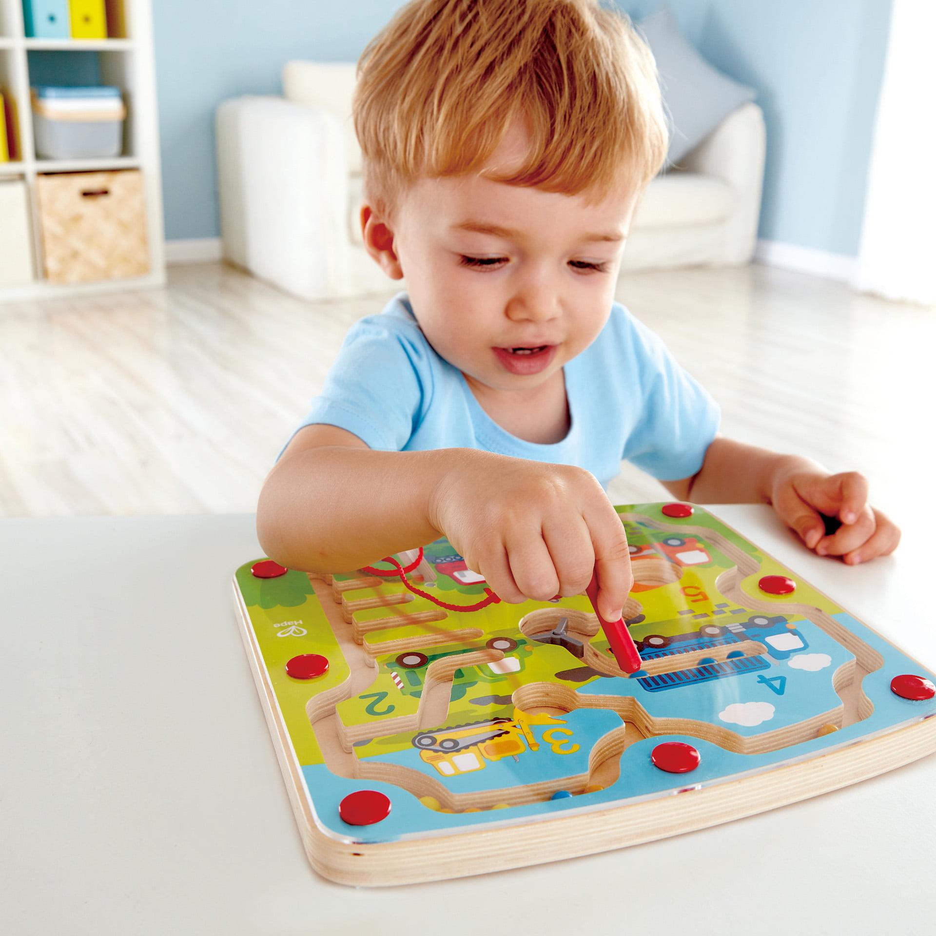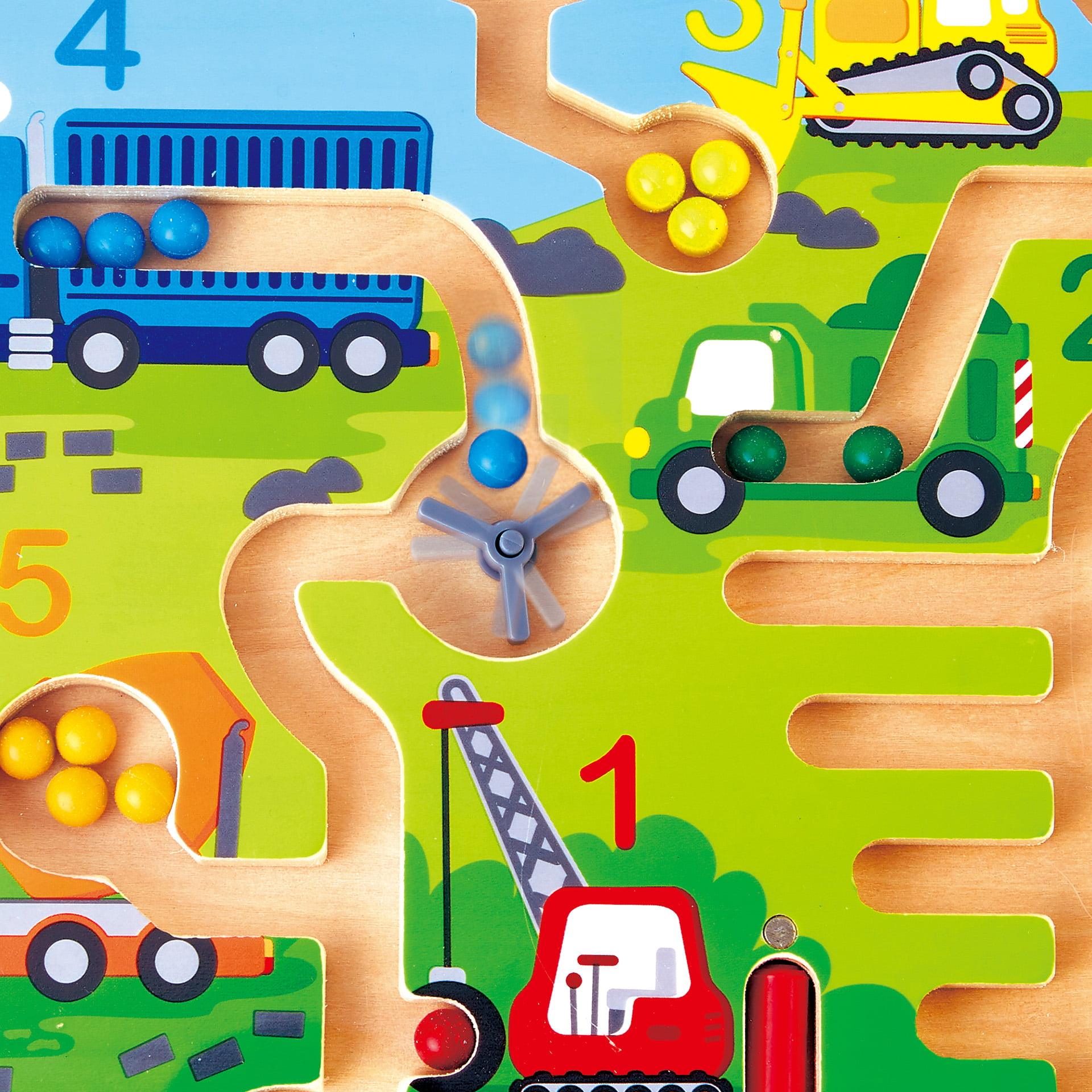 Ghideaza margelele cu bagheta magnetica prin aceasta jucarie puzzle labirint de constructie. Perfect pentru copii mici, acest set de joaca include cinci vehicule de constructie numerotate pentru a identifica si „incarca”.