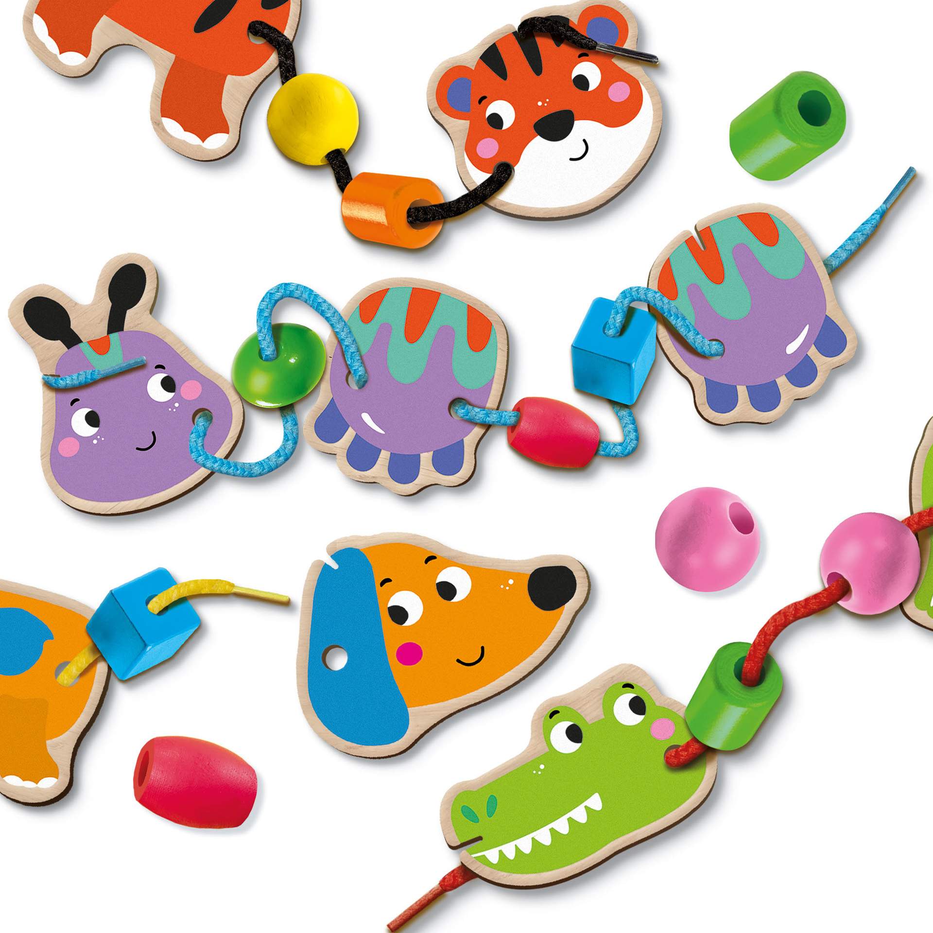 Acest set, format din douasprezece piese de animale si diferite forme de margele de lemn, ii tine distrati pe copii datorita aspectului amuzant al animalelor si este o activitate placuta. Piesele de animale pot fi atasate impreuna folosind sireturile, pentru a crea un animal complet de la cap pana la coada.