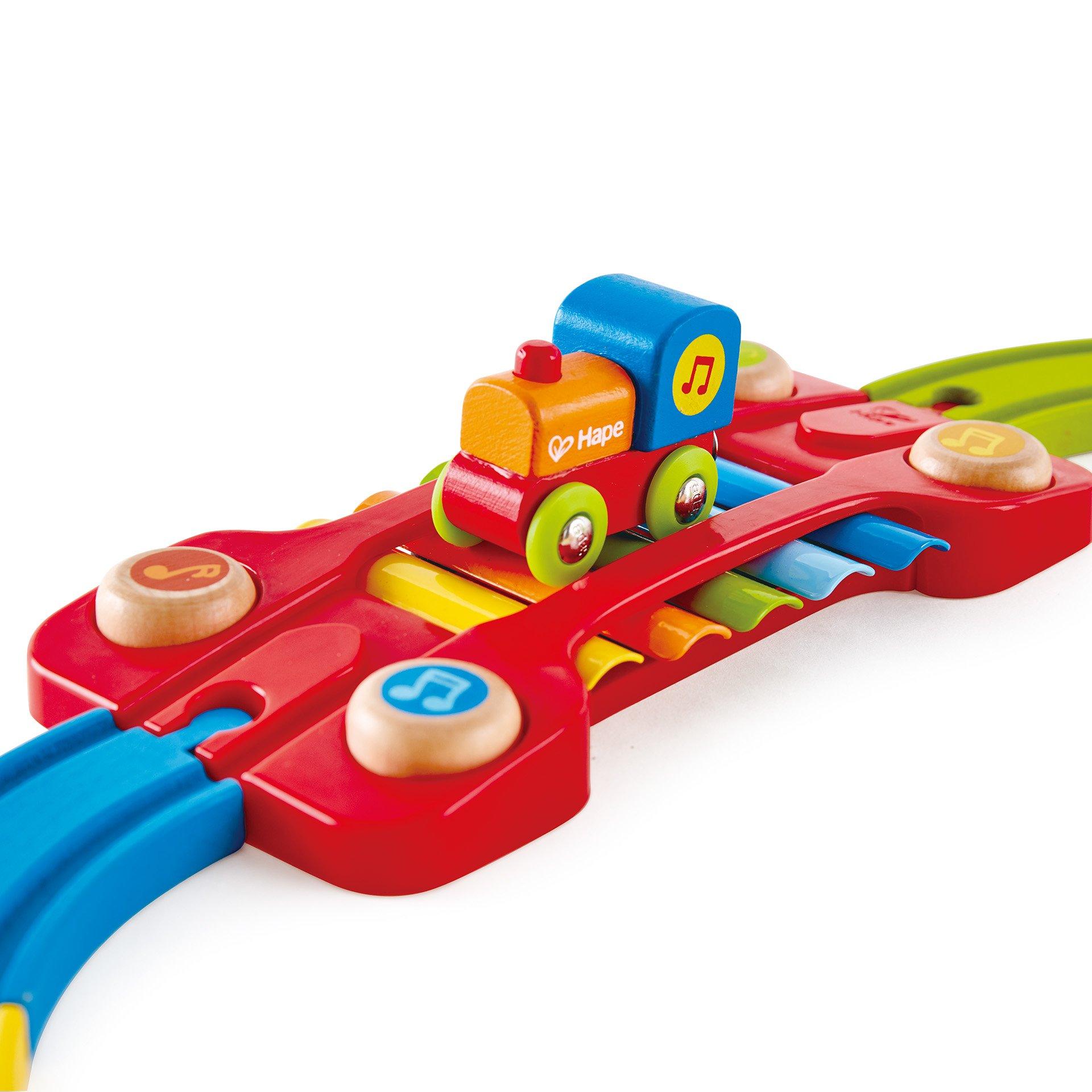 Pista xilofon reda o melodie pe masura ce motorul este condus peste ea. Barierele din lemn tin trenul pe sine curcubeu.