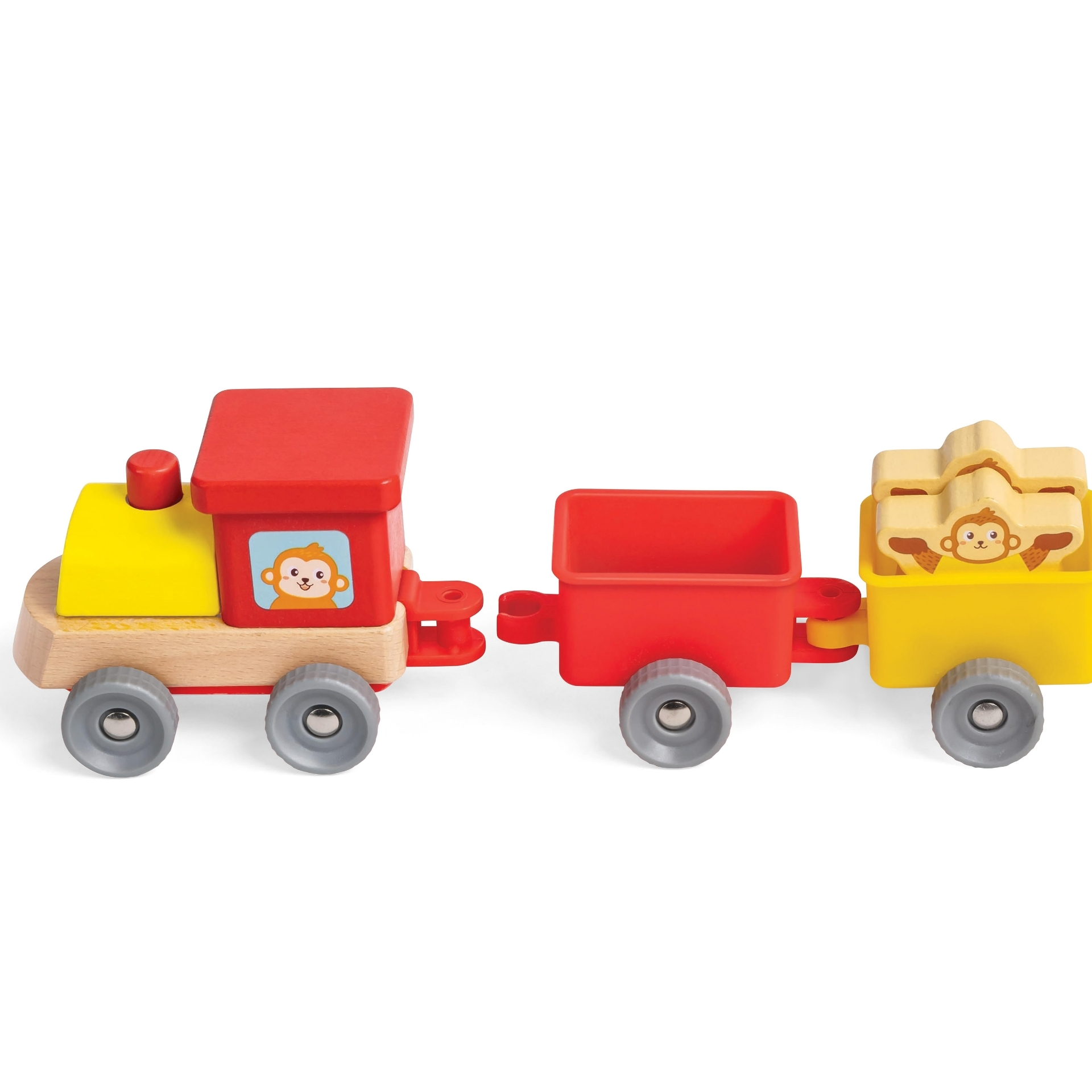 Cu 10 maimute obraznice asezate la bordul unui tren, poti sa le potriviti culorile cu vagonul potrivit sau sa le stivuiti impreuna? Cu culori stralucitoare si forme groase, aceasta jucarie este perfecta pentru ca cei mici sa-si dezvolte recunoasterea culorilor si abilitatile numerice.
