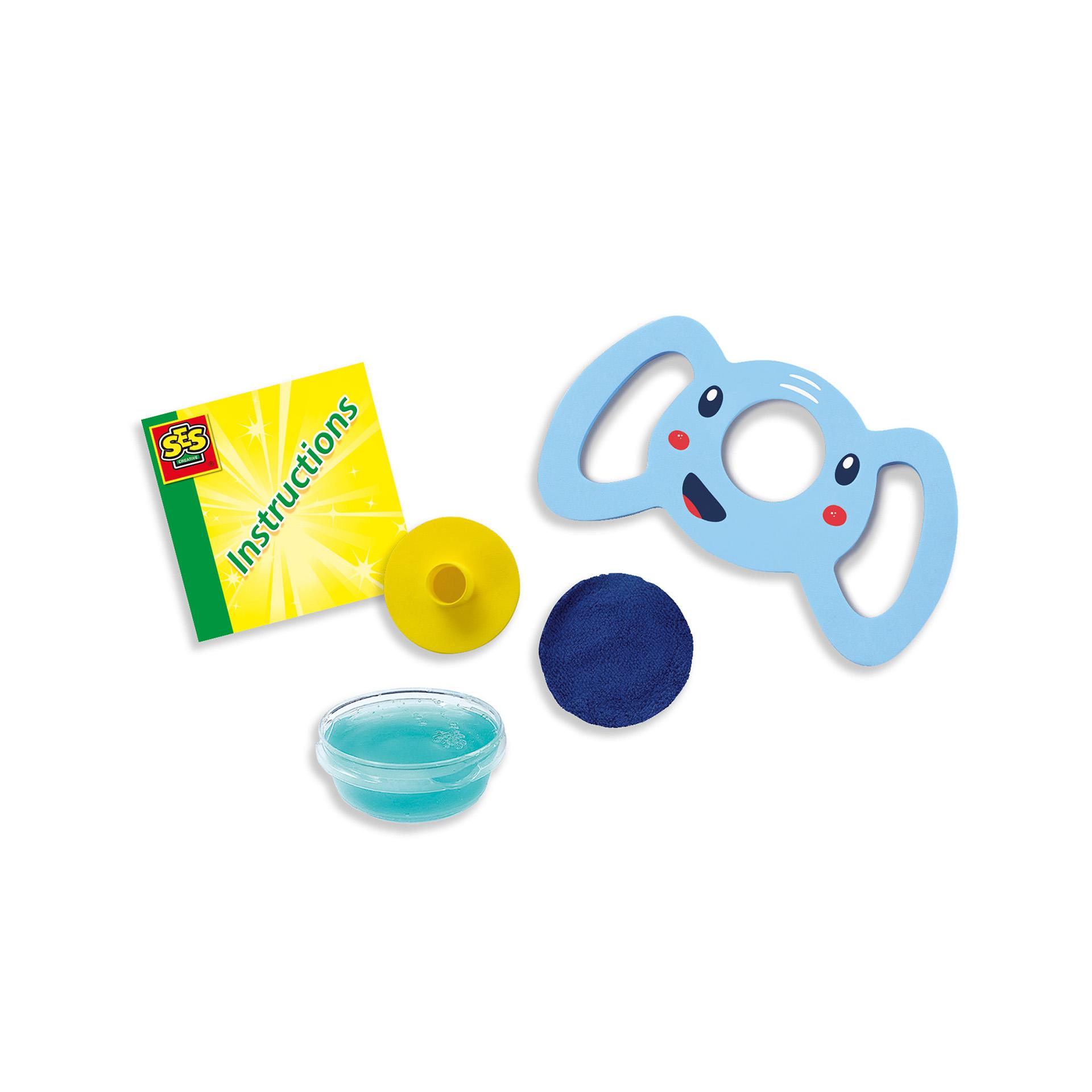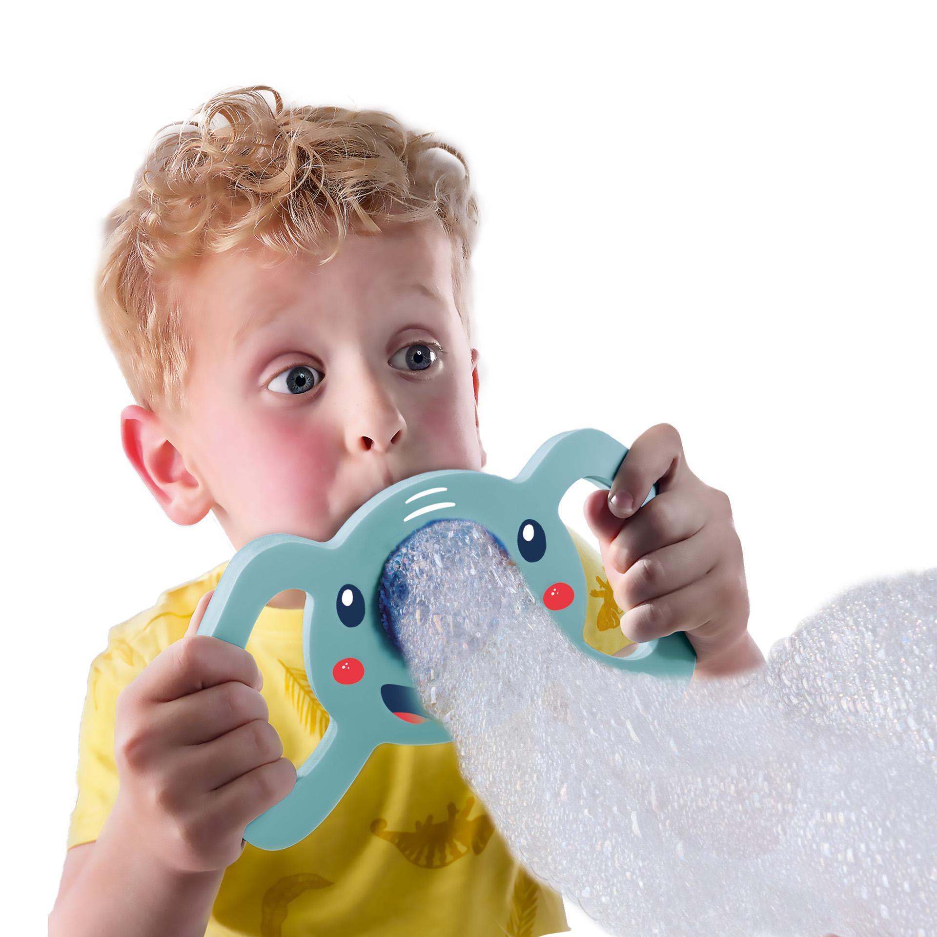 Ce s-a intamplat cu trompa acestui dragut de elefant? Prinde-i urechile, scufunda-i nasul in solutia cu bule si sufla! Acest elefant din spuma Bubble are un nas din tesatura care poate absorbi cu usurinta solutia de sapun. Te poti distra mult cu vasul de 50 ml cu solutie de sapun, dar poti folosi si alte sapunuri, cum ar fi sapunul de maini, sapunul de baie sau lichidul de spalat.