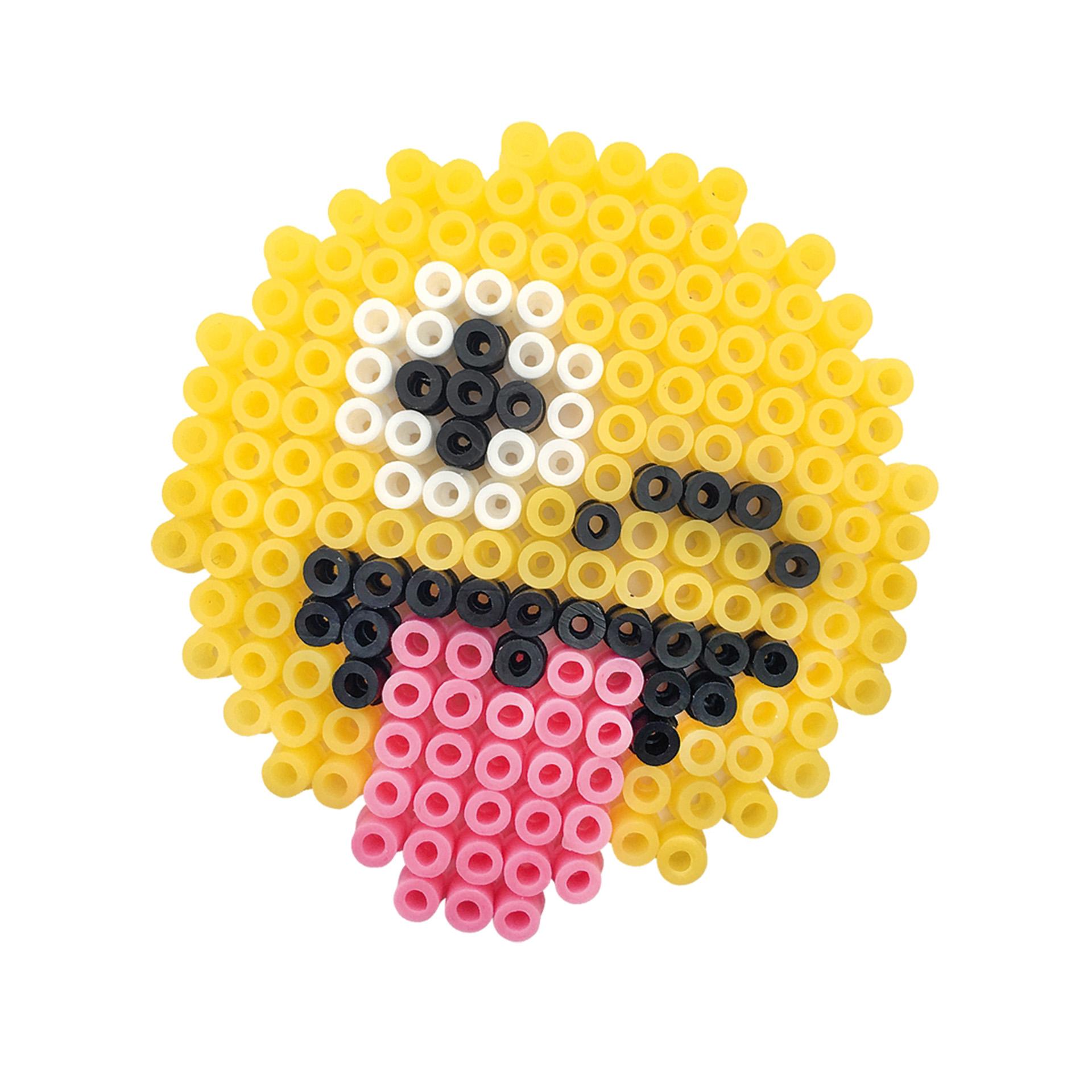Puteti realiza cele mai minunate emoticoane din margele de calcat! O fata care rade, un ras vesel sau un emoticon iubitor. Sfat: folositi emoticoanele pe post de coaster pentru pahar. Sau lasati o gaura in mijloc si foloseste-l ca protectie de sticla, pentru a tine mustele departe de bautura ta.