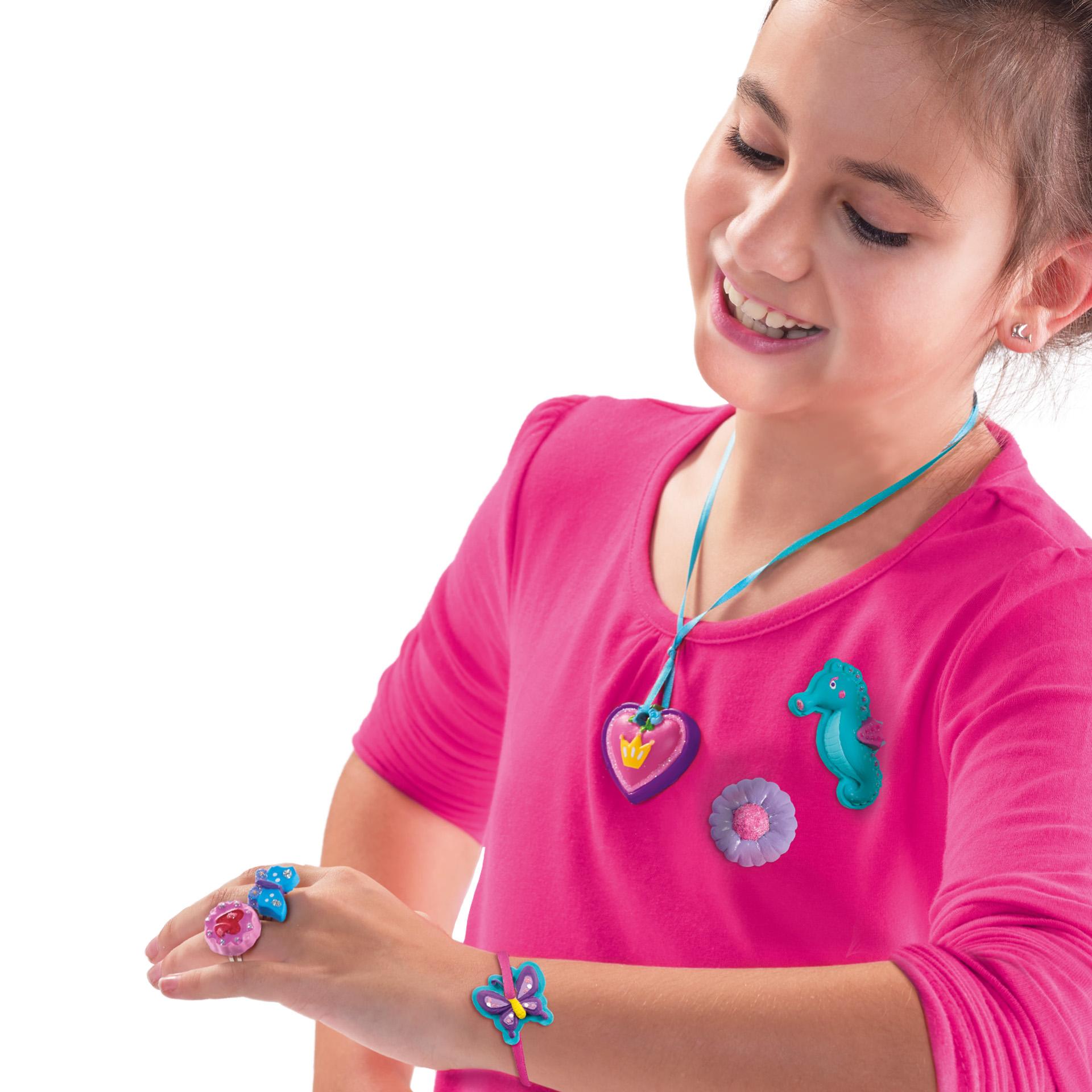 Intotdeauna ti-ai dorit sa fii producator de bijuterii? Atunci avem setul de inceput perfect pentru tine. Se amesteca pudra de modelat cu apa si se toarna amestecul in forme; acuarele, sclipici, si gata!