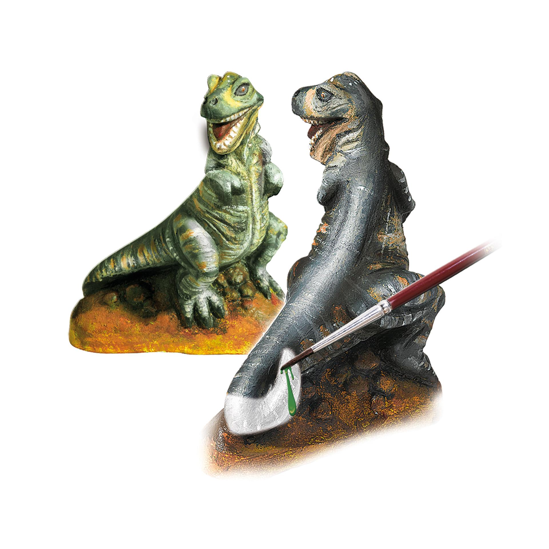 Contine: ipsos; matrita de latex T-rex; 4 suporturi din plastic; 6 x acuarele; pensula.